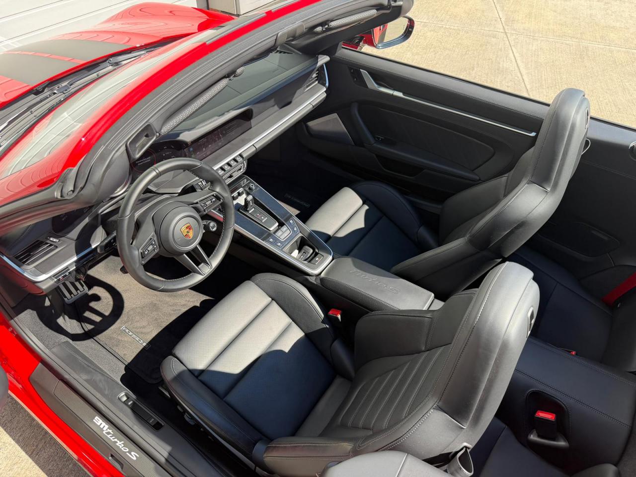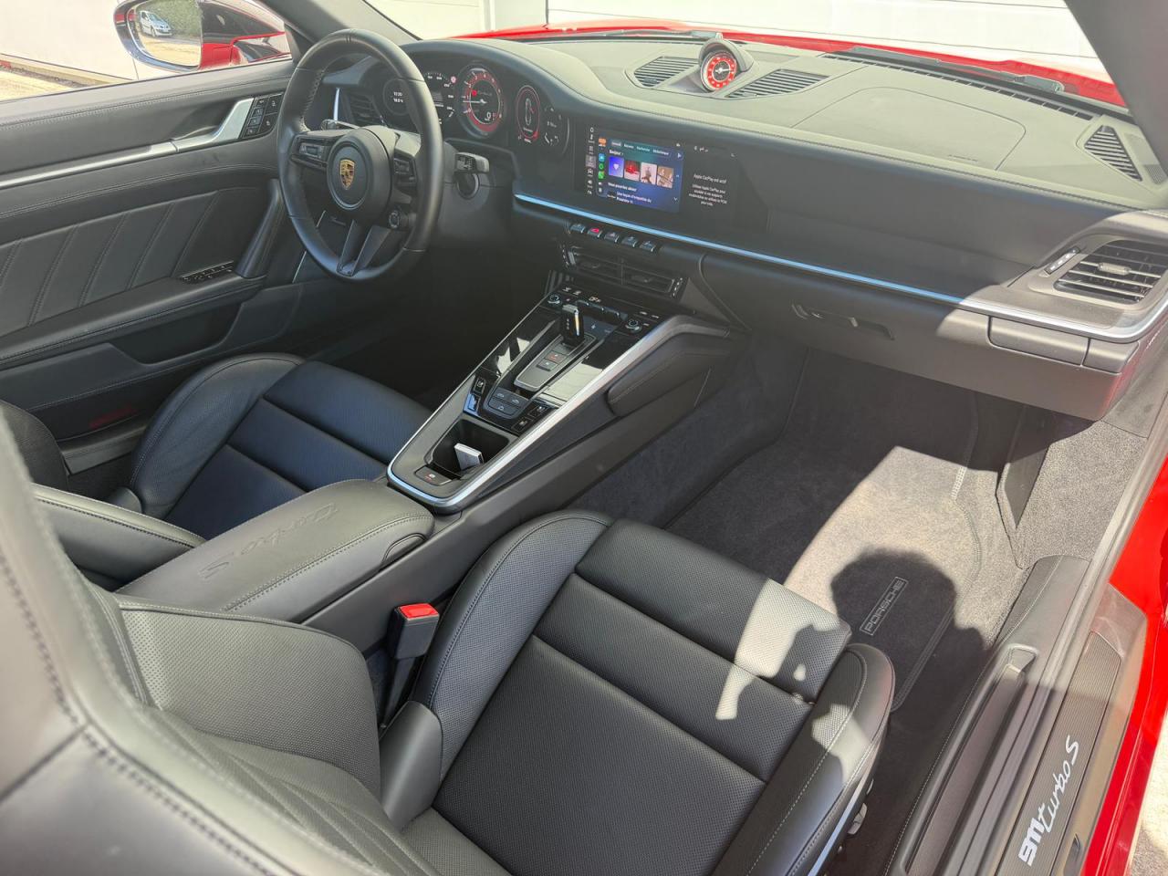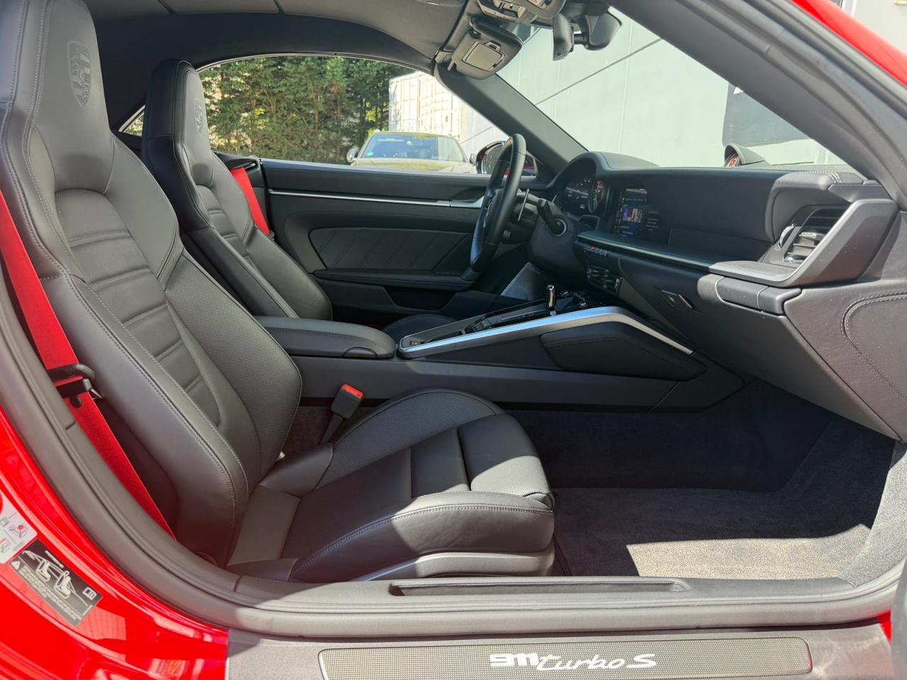 Accès Confort Accoudoir de console centrale avec écusson Porsche Affichage des limitations de vitesse avec assistance de changement... Assistance à la vision nocturne Assistance angles morts Assistance parking avant et arrière avec caméra... Baguettes de seuil de porte en Carbone, illuminées Burmester High-End Surround Sound-System Ceintures de sécurité Rouge Indien Clé du véhicule peinte et étui à... Colonne de direction en cuir Ecusson Porsche sur appuie-tête avant Entrées d'air latérales en couleur Noir Etriers de freins PCCB noir Feux arrières Exclusive Film de protection avant Fond de compteurs Rouge Indien Fond du chronomètre Rouge Indien ... Intérieur tout cuir Ioniseur Jantes peintes en Noir, finition brillante Jupes latérales SportDesign Kit de réparation avec compresseur électrique Pack Luminosité Pare-soleil en cuir Pédaliers en aluminium Peintures spéciales Phares matriciels à DEL teintés avec fonction Porsche... Porsche InnoDrive avec régulateur de vitesse adaptatif Porsche Vehicule Tracking System Plus (PVTS Plus) ... Régulateur de vitesse adaptatif Sièges avant chauffants Sièges avant ventilés Sièges confort à l’avant avec Pack Mémoire... Sièges sport adaptatifs à l'avant (18 réglages... Sièges sport Plus Système d'échappement Sport en noir Système de levage de l'essieu avant Tapis de sol personnalisés gansé de cuir Volant Sport GT en cuir multifonction avec chauffage et éléments...